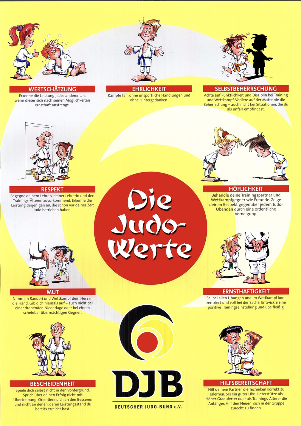 Nach dem Angrüßen ging es konzentriert los – alle Falltechniken, Würfe und Bodentechniken wurden von den Lehrerinnen abgeprüft, während die Co-Trainer/innen Marlene, Elina, Igor und Vincent eifrig gruppenweise ihre Schäfchen um sich geschart hatten, um die Judo-Werte und deren praktische Anwendung auf der Judomatte und auch im Leben abzufragen – ist Judo doch nicht nur eine Sportart, sondern auch a way of life!