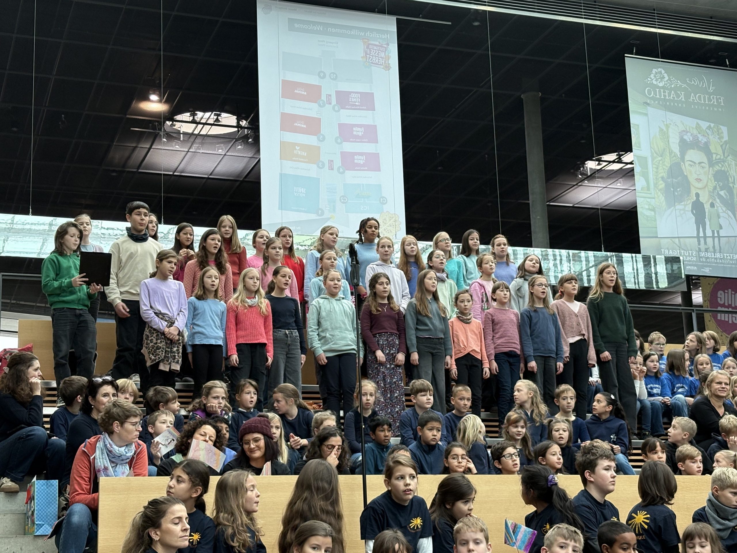 Am 21. November hatte der Unterstufenchor von Frau Schiel und Herrn Schmitt-Bohn einen großen Auftritt beim 20-jährigen Jubiläumskonzert von “Sing mit” auf der Landesmesse, in Anwesenheit der Schirmherrin und First Lady von Baden-Württemberg, Gerlinde Kretschmann.