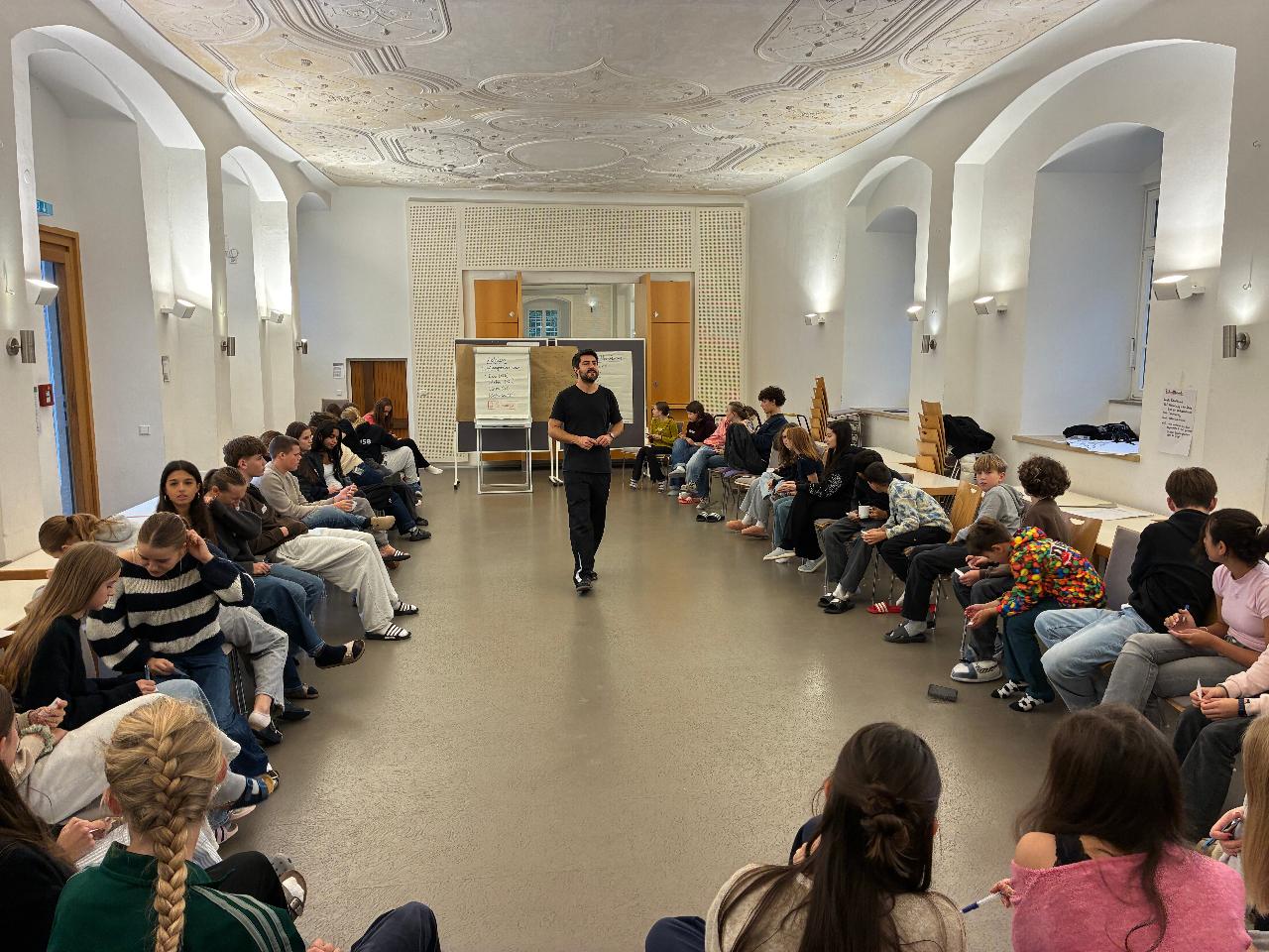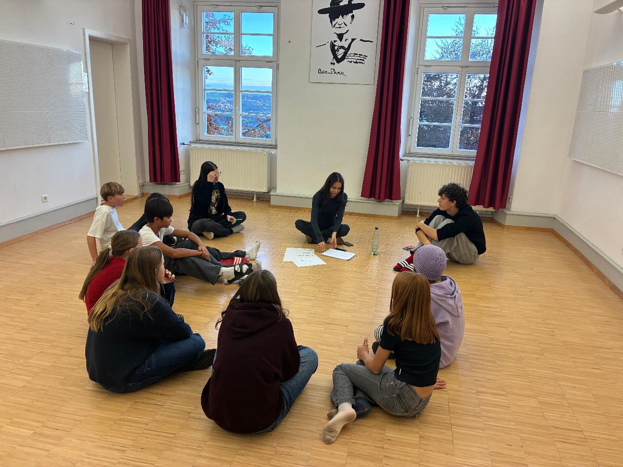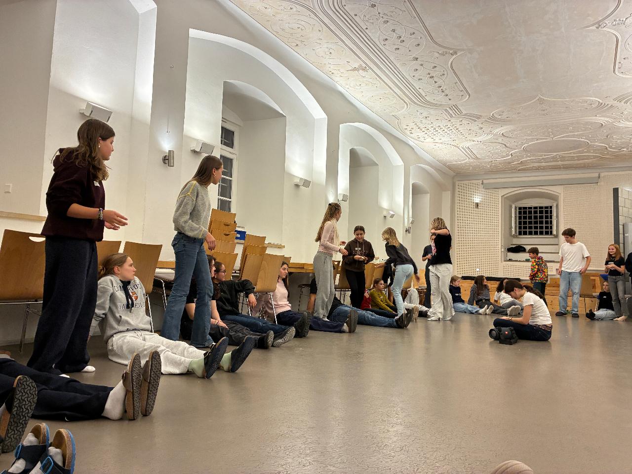 Am Mittwoch sind wir um 13.20 Uhr losgefahren. Nach der Ankunft auf dem Schloss haben wir zunächst unsere Zimmer bezogen und uns dann in kleineren Gruppen spielerisch Gedanken über mögliche Projekte und Aktionen gemacht. Danach haben wir uns zu verschiedenen Großprojekten zusammenzugeordnet und innerhalb dieser nochmal kleinere Projektgruppen gebildet, um gezielter arbeiten zu können. Abends haben wir noch alle zusammen Spiele gespielt, wie z.B Bombe, was sehr lustig war.