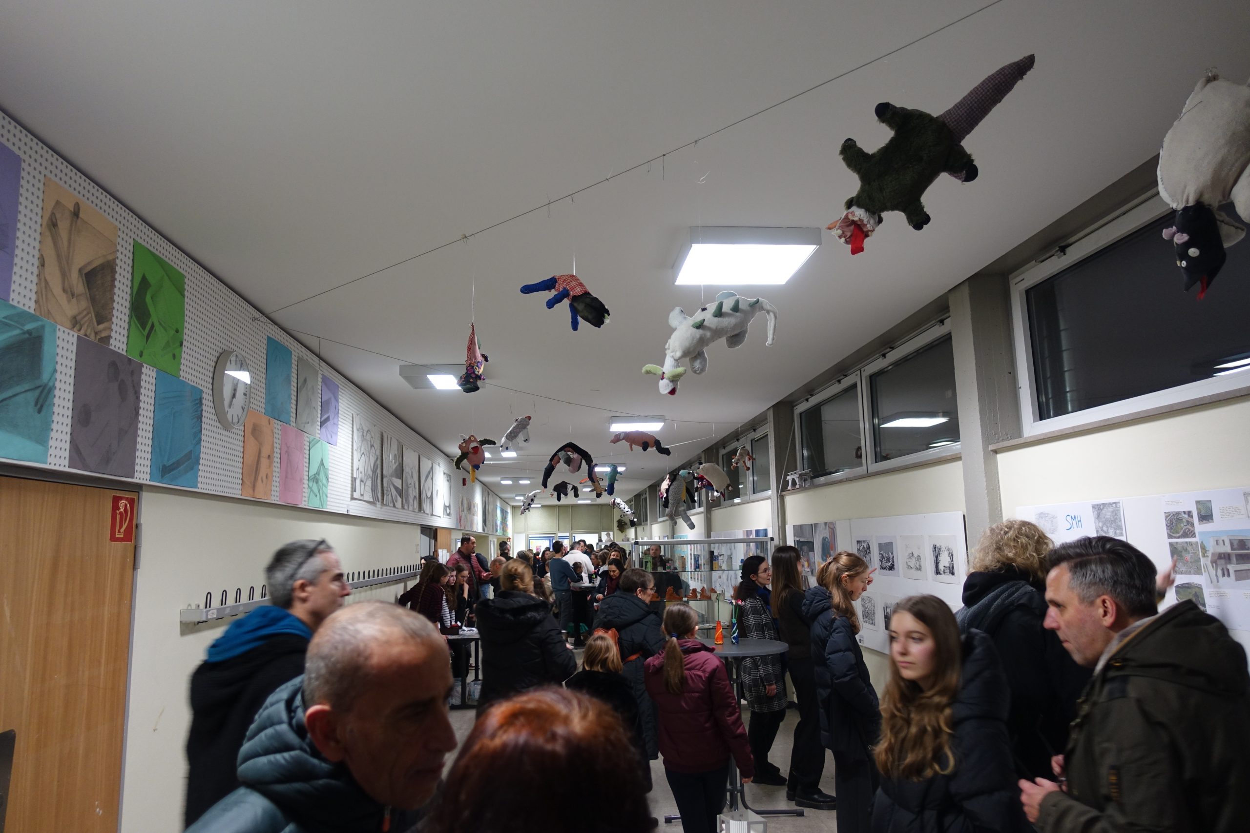 Die Besucher strömten nun ins Schulhaus und entdeckten die zahlreichen künstlerischen Werke aller Klassenstufen.